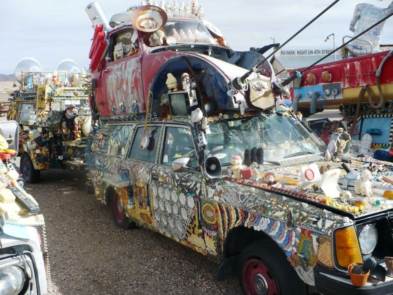 Город не вымер окончательно. Кто-то и сейчас живет в нем - как написано в путеводителе - неортодоксальные художники и "independent thinkers", что можно перевести как "необычно мыслящие люди". Один из таких необычных людей занимался тем, что "богато" украшал старые автомобили самыми необычными предметами и выставлял их на продажу. Он уже умер, но несколько таких экспонатов все еще стоят вдоль шоссе номер 95.