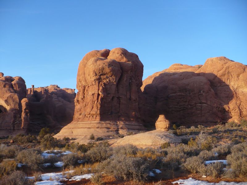 Если бы я был кинорежиссер и мне нужно было снять кинофильм о жизни на Марсе, то я бы выбрал для натурных сьемок национальный парк "Арки" расположенный  на юго-западе штата Юта, недалеко от границы со штатом Колорадо. Более странного места, чем этот парк мне в жизни видеть не приходилось – высокогорная пустыня, выкрашенная во все оттенки темно-красного цвета, в которой то там, то здесь возвышаются разнообразные природные образования – арки, колонны, фантастические фигуры, напоминающие людей и животных. Климат здесь резко континентальный. Летом почти всегда стоит жара за 40 градусов цельсия, зимой – снег холод и ветры, что весьма способствует эрозии каменных плит.