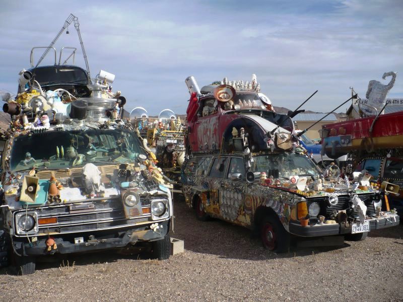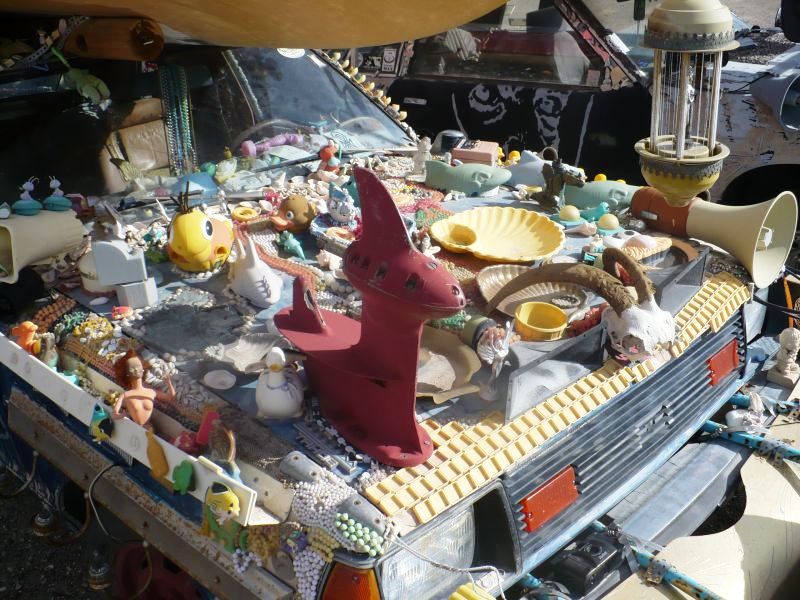 Город не вымер окончательно. Кто-то и сейчас живет в нем - как написано в путеводителе - неортодоксальные художники и "independent thinkers", что можно перевести как "необычно мыслящие люди". Один из таких необычных людей занимался тем, что "богато" украшал старые автомобили самыми необычными предметами и выставлял их на продажу. Он уже умер, но несколько таких экспонатов все еще стоят вдоль шоссе номер 95.