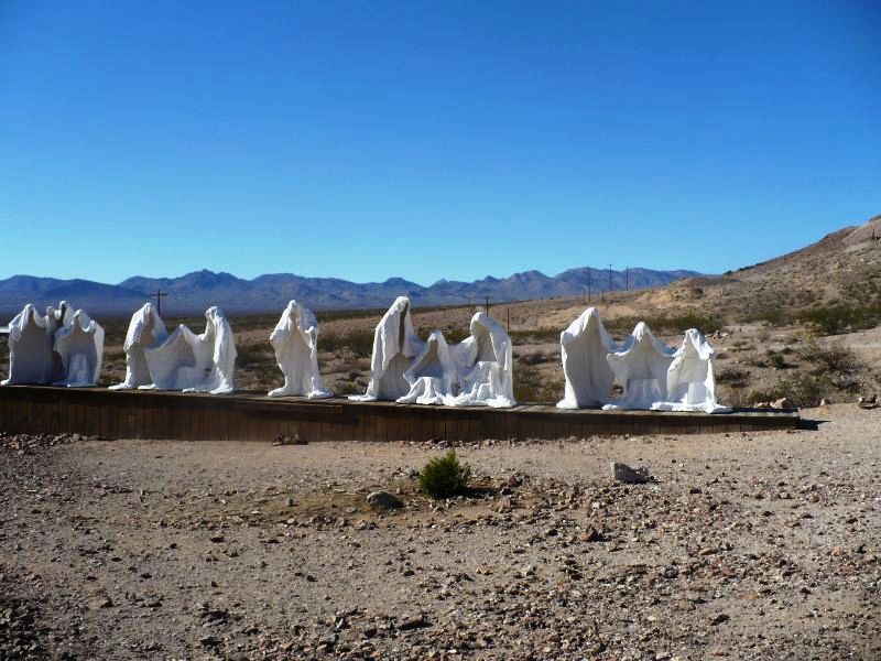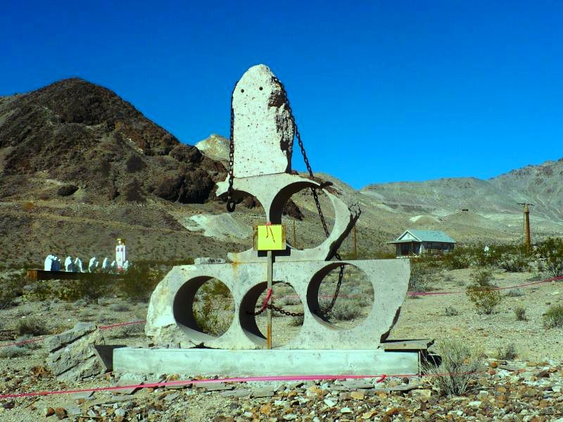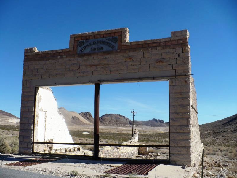 Следующая остановка - город Rhyolite (Риолит), расположенный в 115 милях к северу от Лас Вегаса, назван так по имени породы, содержащей золото. Находится он также в Неваде, на шоссе 374, перед самым вьездом в парк "Долина Смерти".