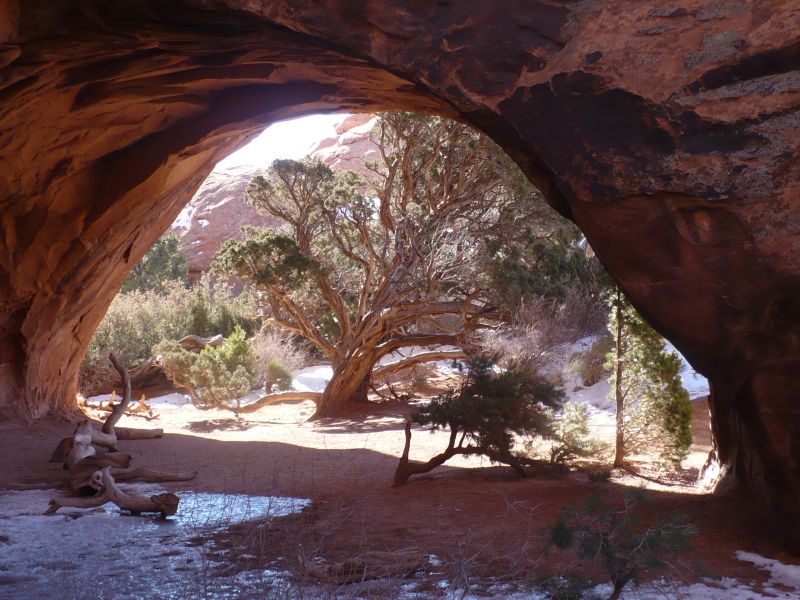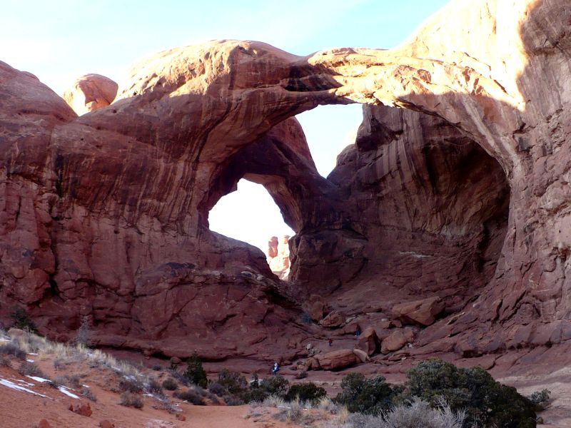 Если бы я был кинорежиссер и мне нужно было снять кинофильм о жизни на Марсе, то я бы выбрал для натурных сьемок национальный парк "Арки" расположенный  на юго-западе штата Юта, недалеко от границы со штатом Колорадо. Более странного места, чем этот парк мне в жизни видеть не приходилось – высокогорная пустыня, выкрашенная во все оттенки темно-красного цвета, в которой то там, то здесь возвышаются разнообразные природные образования – арки, колонны, фантастические фигуры, напоминающие людей и животных. Климат здесь резко континентальный. Летом почти всегда стоит жара за 40 градусов цельсия, зимой – снег холод и ветры, что весьма способствует эрозии каменных плит.