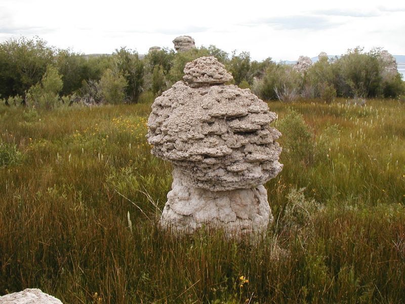 Это так называемая туфа (Tufe), природный минерал, образованный в результате химических реакций. Когда богатая кальцием вода поступающая их подземных источников, расположенных на дне озера, смешивается с пересоленой, насыщенной карбонатами водой озера, то формируется карбонат кальция. Постепенно накапливаясь, осадки карбоната кальция оседают около источника и формируют туфовые колонны, растущие со дна озера.